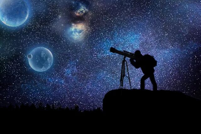 晚上:用天文望远镜观察月球上的陨石坑