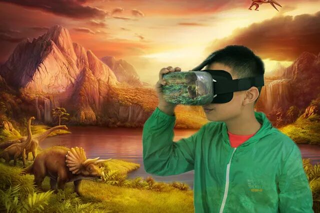 玩VR虚拟现实游戏——身临其境恐龙世界、炫酷过山车等