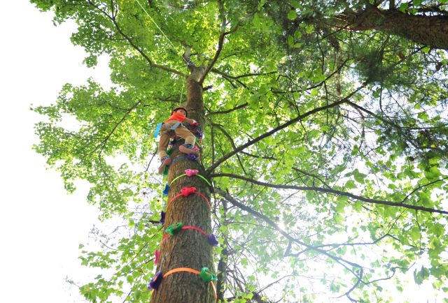 上午:攀树——在专业教练指导下爬上数十米的树端,这是勇气的修炼与挑战